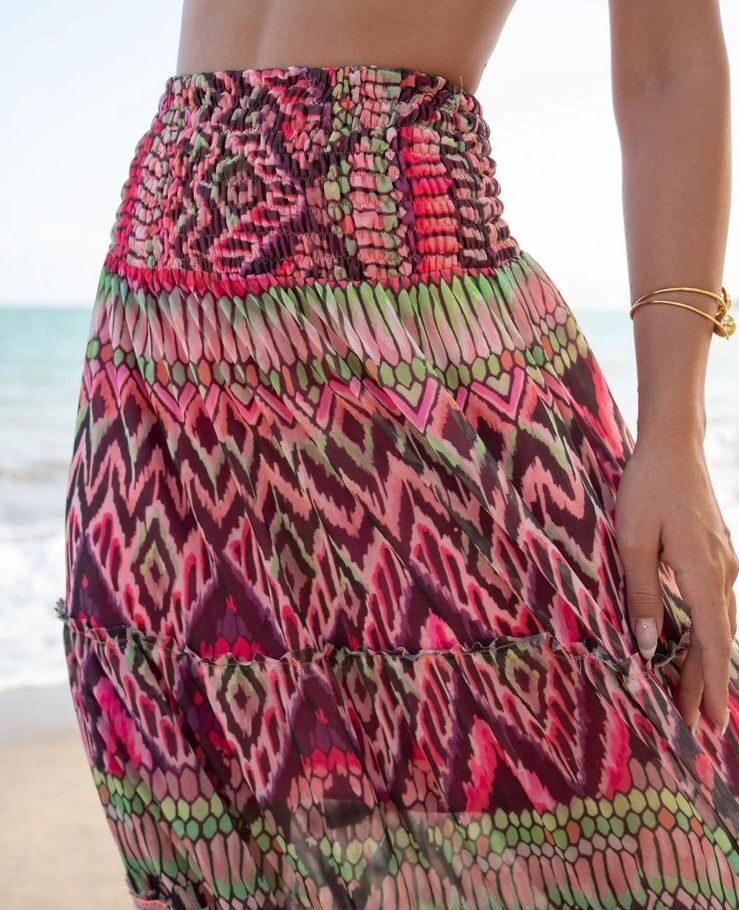 Inspirada na leveza das paisagens de Sardenha, essa saia boho traduz liberdade com sofisticação. O tom pink vibrante revela personalidade marcante, enquanto o caimento fluido cria movimento elegante a cada passo. Uma peça que combina romantismo e atitude, perfeita para produções que exigem presença e estilo autêntico. 💖✨